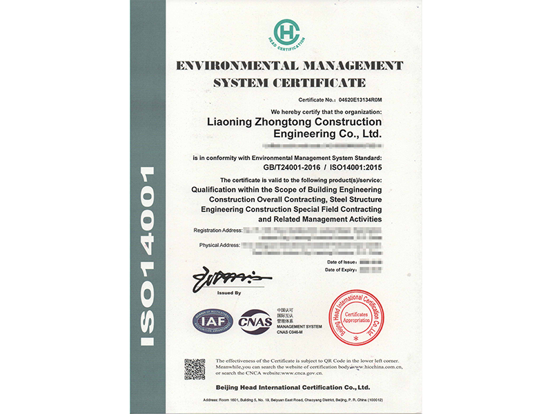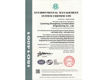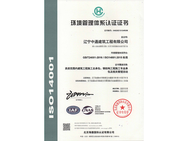 环境管理体系认证证书